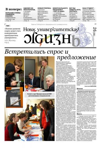 Новая университетская жизнь : газета/ Сиб. федер. ун-т. - Красноярск, 2007 - . - ISSN 2222-5560 2008г. N 26 (38) (27 ноября) Полный текст ( 1.2 Мб; PDF). Ресурс свободного доступа