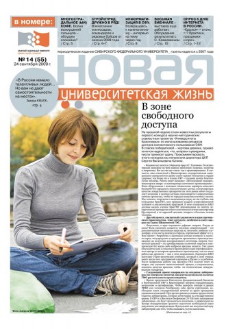 Новая университетская жизнь : газета/ Сиб. федер. ун-т. - Красноярск, 2007 - . - ISSN 2222-5560 2009г. N 14 (55) (24 сентября) Полный текст ( 2.5 Мб; PDF). Ресурс свободного доступа