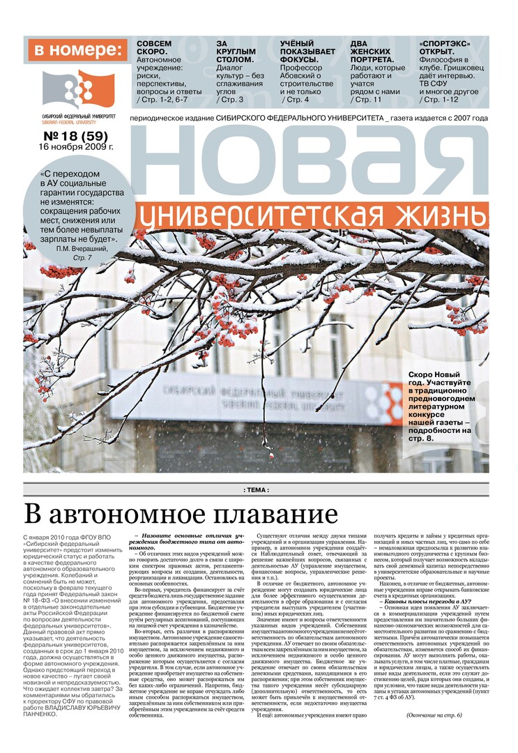 Новая университетская жизнь : газета. 2009 г. № 18 (59) (16 ноября)