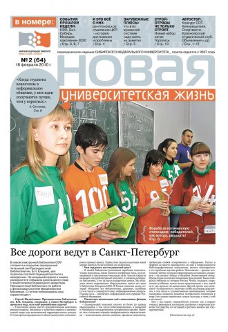 Новая университетская жизнь : газета/ Сиб. федер. ун-т. - Красноярск, 2007 - . - ISSN 2222-5560 2010г. N 2 (64) (18 февраля) Полный текст ( 2.2 Мб; PDF). Ресурс свободного доступа