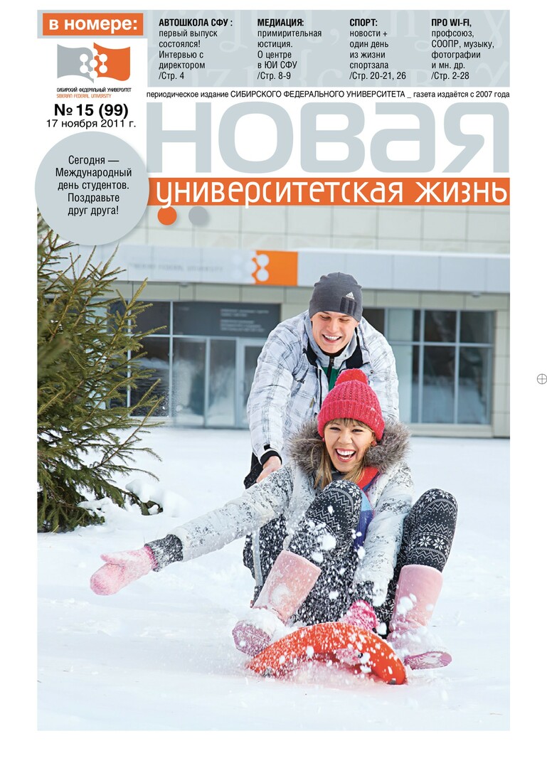 Новая университетская жизнь : газета/ Сиб. федер. ун-т. - Красноярск, 2007 - . - ISSN 2222-5560 2011г. N 15 (99) (17 ноября) Полный текст ( 3.6 Мб; PDF). Ресурс свободного доступа