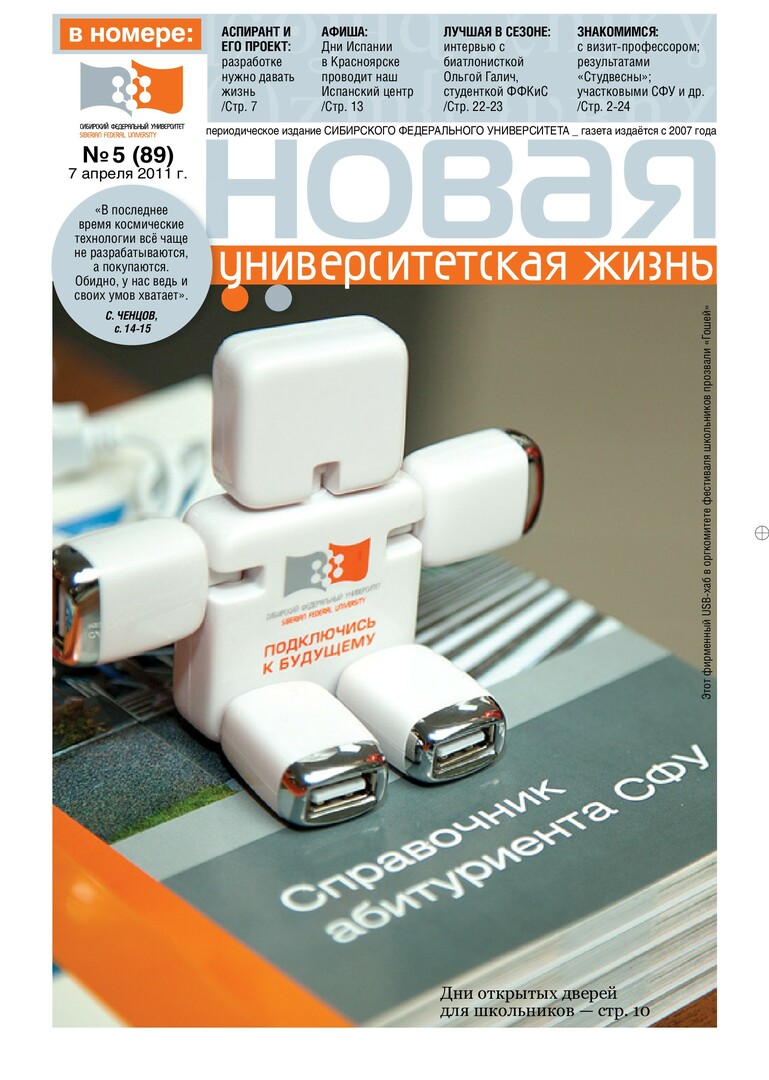 Новая университетская жизнь : газета/ Сиб. федер. ун-т. - Красноярск, 2007 - . - ISSN 2222-5560 2011г. N 5 (89) (7 апреля) Полный текст ( 3.0 Мб; PDF). Ресурс свободного доступа