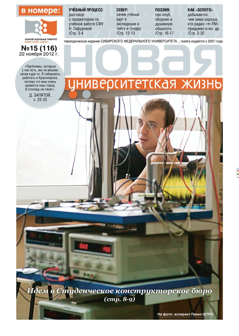 Новая университетская жизнь : газета/ Сиб. федер. ун-т. - Красноярск, 2007 - . - ISSN 2222-5560 2012г. N 15 (116) (22 ноября) Полный текст ( 3.1 Мб; PDF). Ресурс свободного доступа
