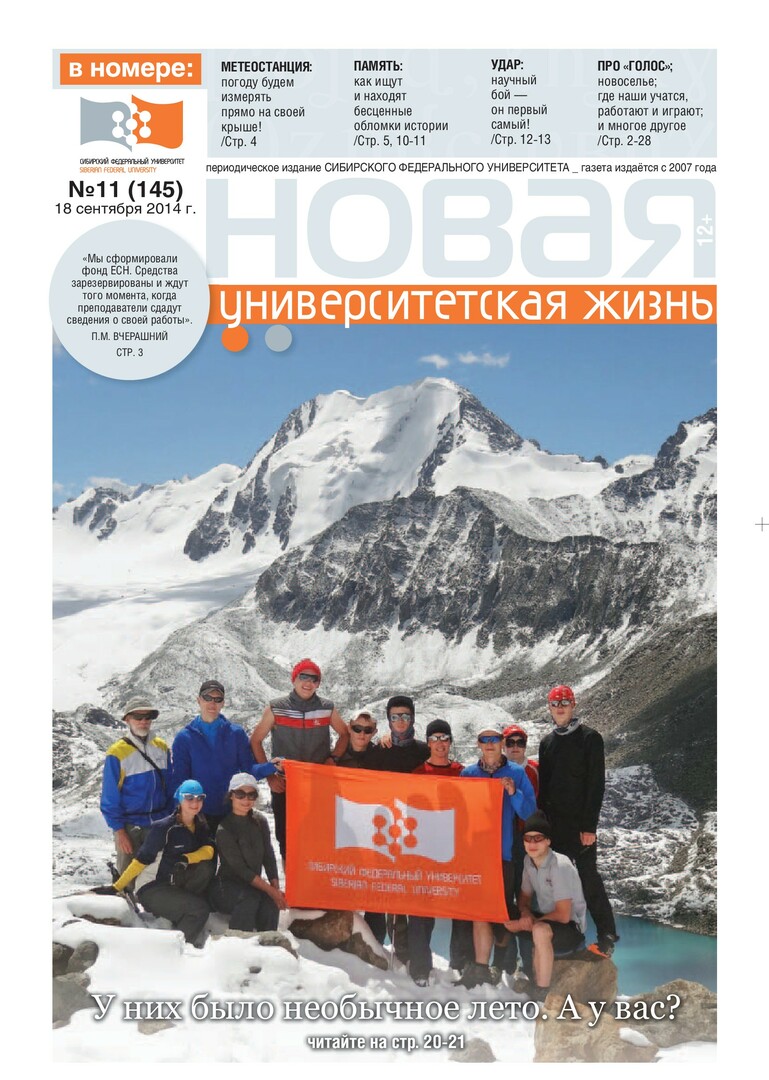 Новая университетская жизнь : газета/ Сиб. федер. ун-т. - Красноярск, 2007 - . - ISSN 2222-5560 2014г. N 11 (145) (18 сентября) Полный текст ( 4.2 Мб; PDF). Ресурс свободного доступа
