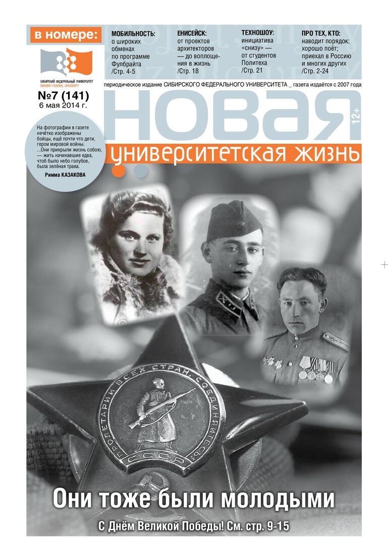 Новая университетская жизнь : газета/ Сиб. федер. ун-т. - Красноярск, 2007 - . - ISSN 2222-5560 2014г. N 7 (141) (6 мая) Полный текст ( 3.8 Мб; PDF). Ресурс свободного доступа