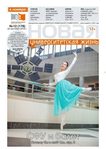 Новая университетская жизнь : газета/ Сиб. федер. ун-т. - Красноярск, 2007 - . - ISSN 2222-5560 2016г. N 12 (178) (22 сентября) Полный текст ( 2.7 Мб; PDF). Ресурс свободного доступа