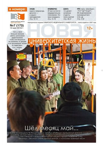Новая университетская жизнь : газета/ Сиб. федер. ун-т. - Красноярск, 2007 - . - ISSN 2222-5560 2016г. N 7 (173) (13 мая) Полный текст ( 3.7 Мб; PDF). Ресурс свободного доступа