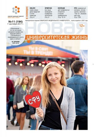 Новая университетская жизнь : газета/ Сиб. федер. ун-т. - Красноярск, 2007 - . - ISSN 2222-5560 2017г. N 11 (194) (7 сентября) Полный текст ( 3.7 Мб; PDF). Ресурс свободного доступа