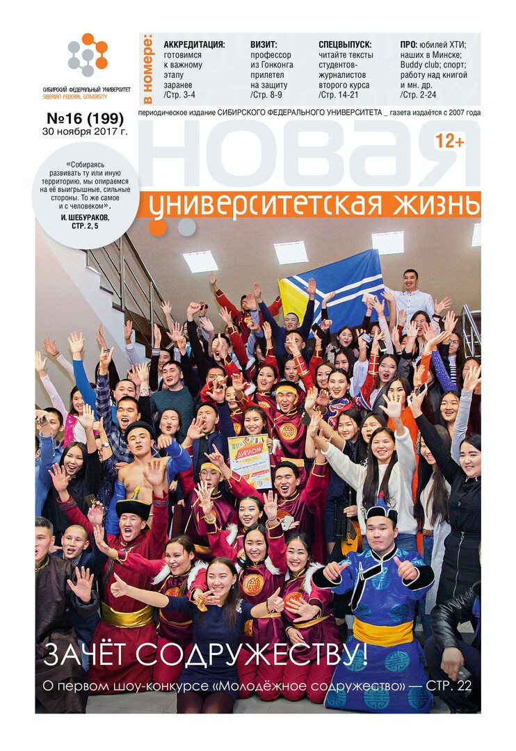Новая университетская жизнь : газета/ Сиб. федер. ун-т. - Красноярск, 2007 - . - ISSN 2222-5560 2017г. N 16 (199) (30 ноября) Полный текст ( 4.1 Мб; PDF). Ресурс свободного доступа