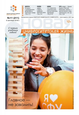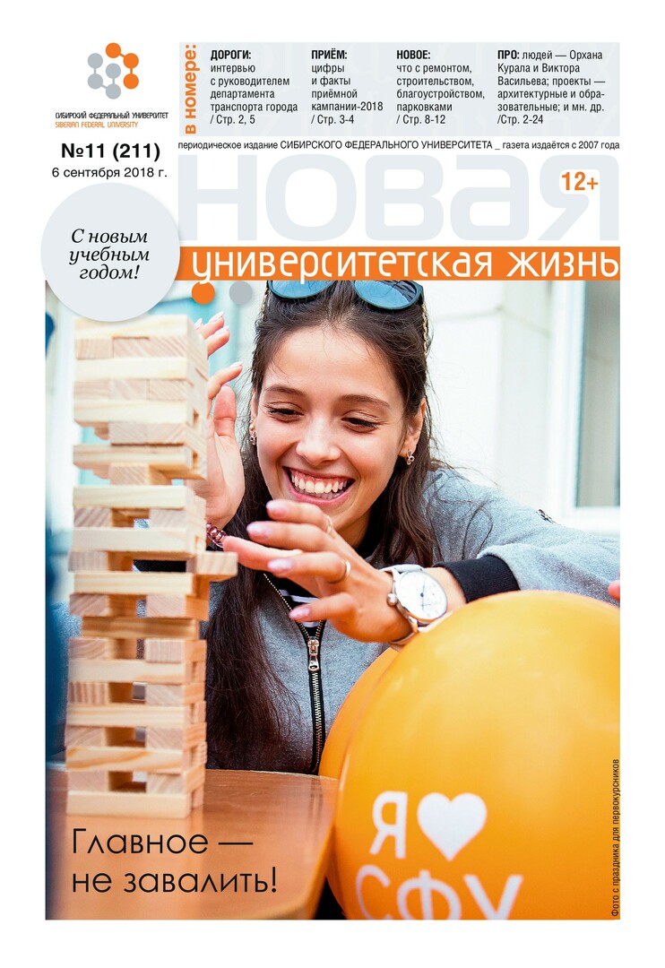 Новая университетская жизнь : газета/ Сиб. федер. ун-т. - Красноярск, 2007 - . - ISSN 2222-5560 2018г. N 11 (211) (6 сентября) Полный текст ( 5.7 Мб; PDF). Ресурс свободного доступа