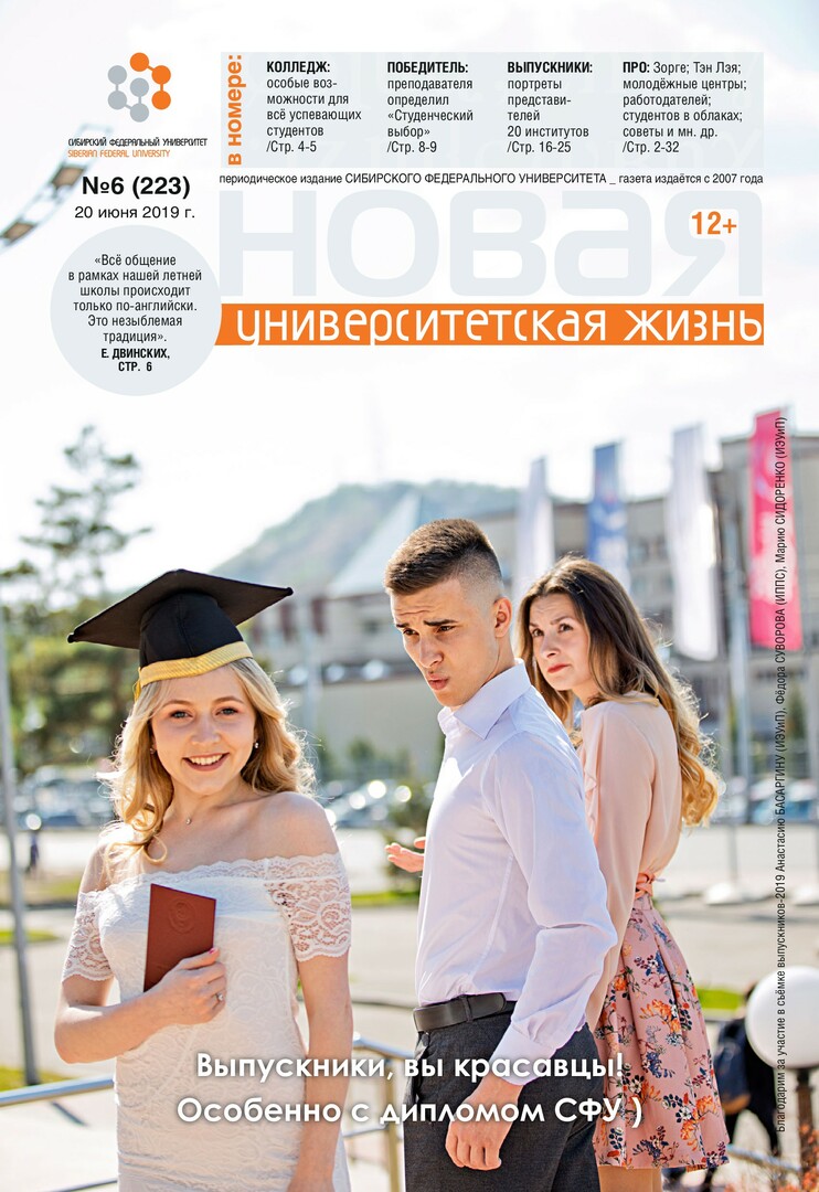 Новая университетская жизнь : газета/ Сиб. федер. ун-т. - Красноярск, 2007 - . - ISSN 2222-5560 2019г. N 6 (223) (20 июня) Полный текст ( 6.9 Мб; PDF). Ресурс свободного доступа