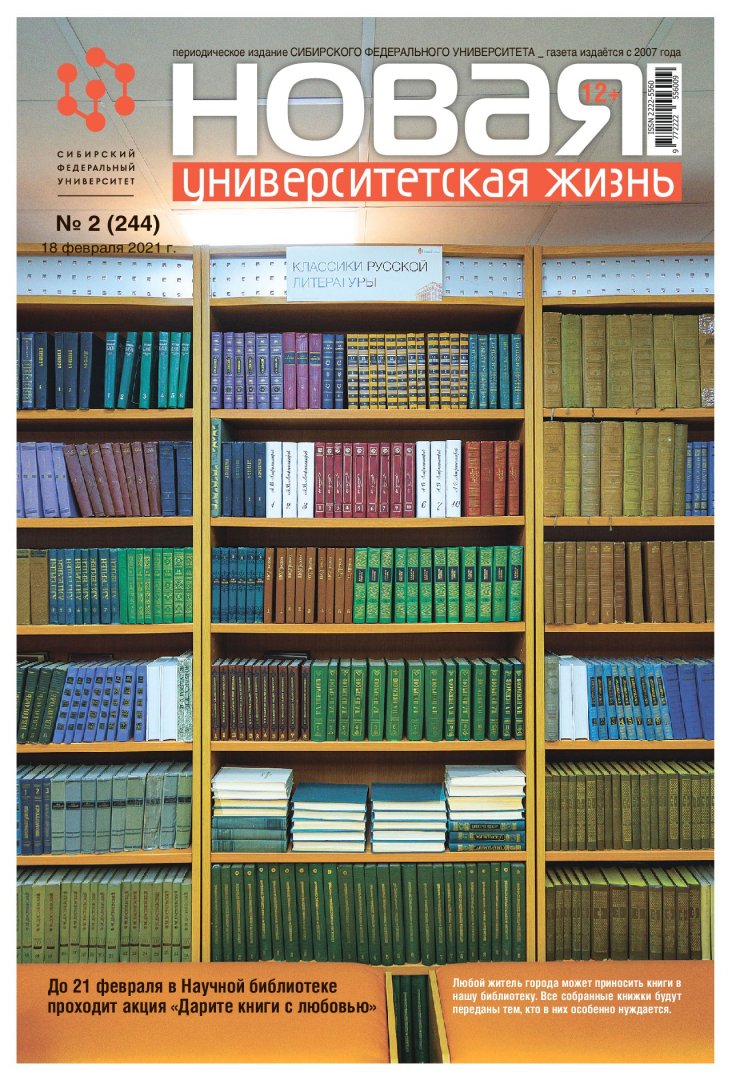 Новая университетская жизнь : газета/ Сиб. федер. ун-т. - Красноярск, 2007 - . - ISSN 2222-5560 2021г. N 2 (244) (18 февраля) Полный текст ( 3.3 Мб; PDF). Ресурс свободного доступа