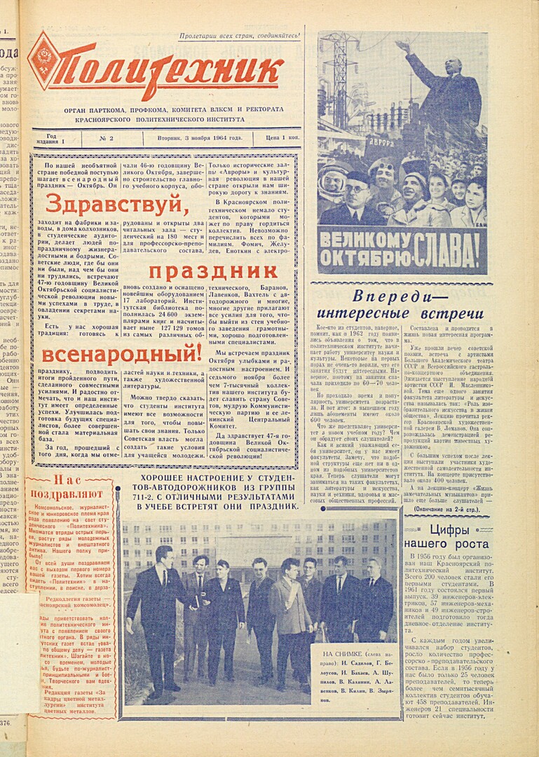 Политехник : газета. 1964 г. № 2 (3 ноября)