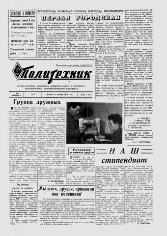 Политехник : газета. 1964 г. № 6 (8 декабря)
