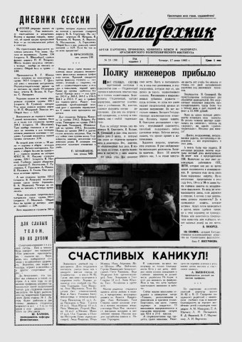 Политехник : газета. 1965 г. № 21 (30) (17 июня)