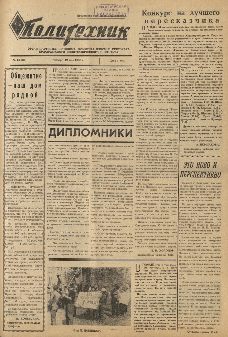 Политехник : газета. 1966 г. № 15 (64) (12 мая)