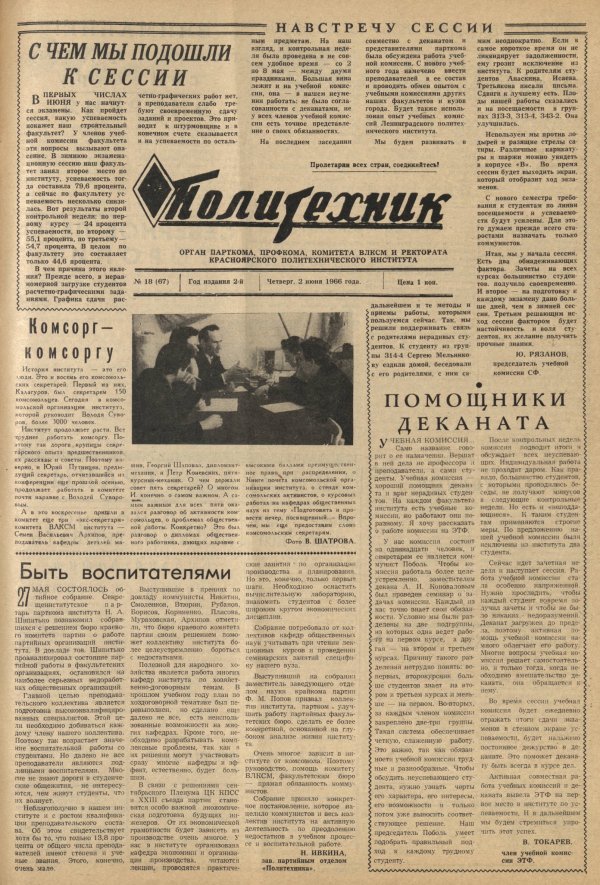 Политехник : газета. 1966 г. № 18 (67) (2 июня)