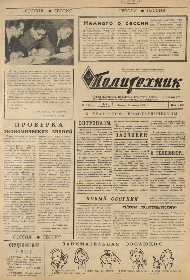 Политехник : газета. 1966 г. № 2 (51) (20 января)