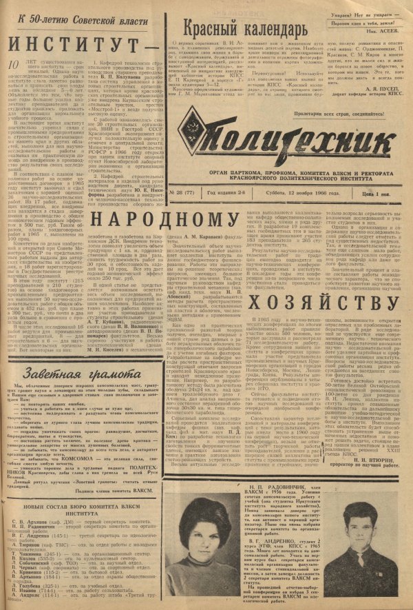 Политехник : газета. 1966 г. № 28 (77) (12 ноября)