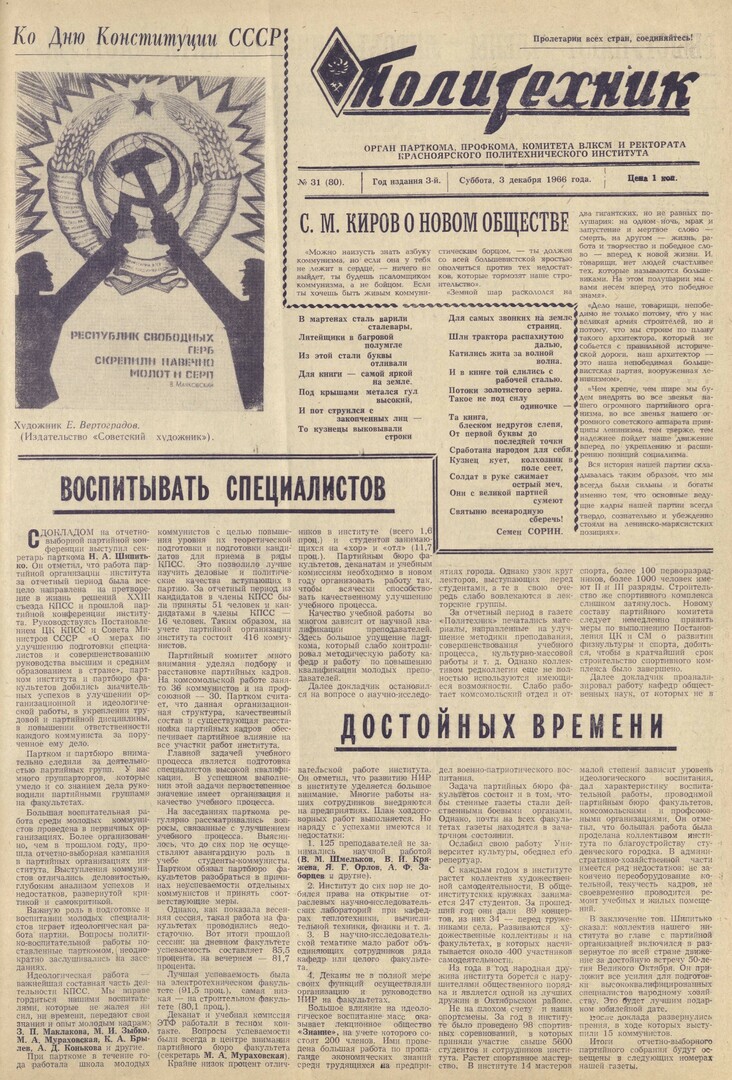 Политехник : газета. 1966 г. № 31 (80) (3 декабря)