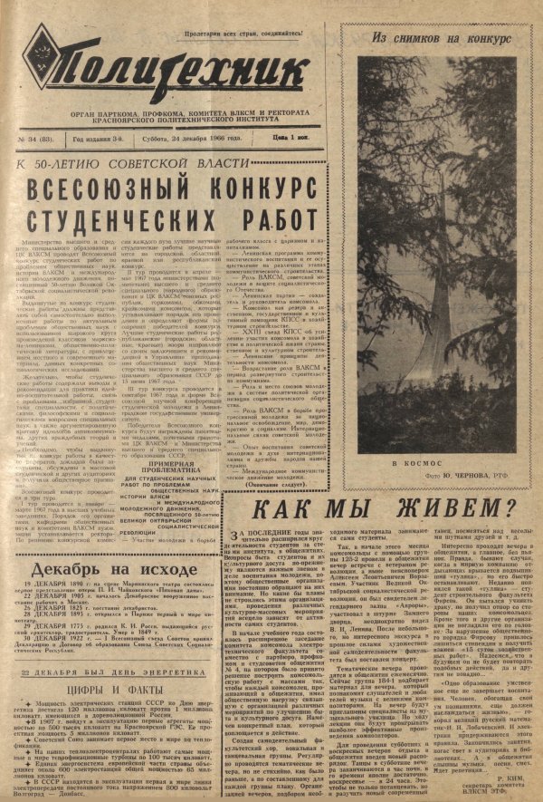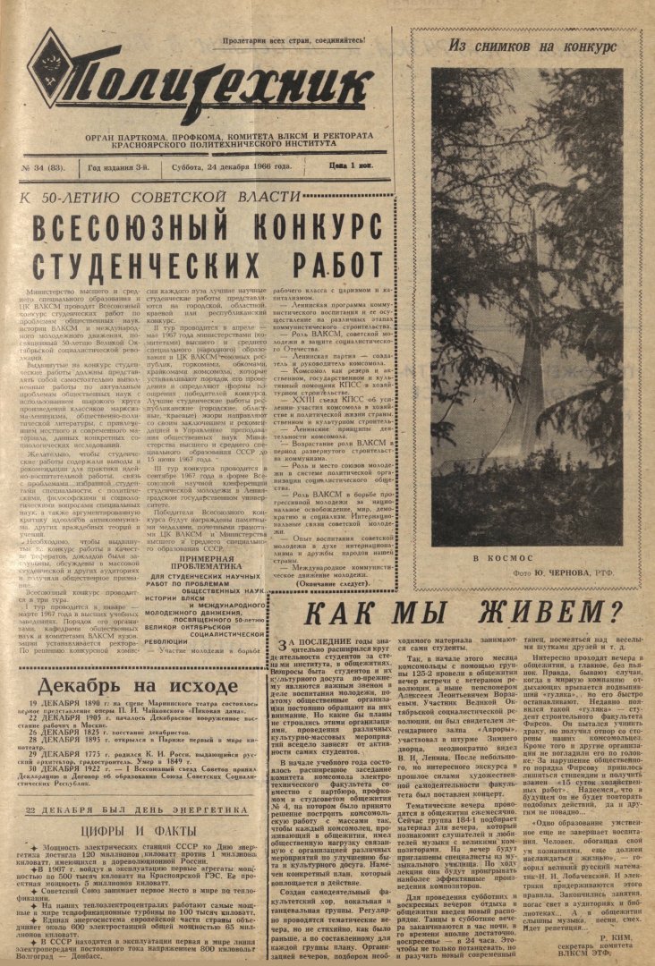 Политехник : газета. 1966 г. № 34 (83) (24 декабря)