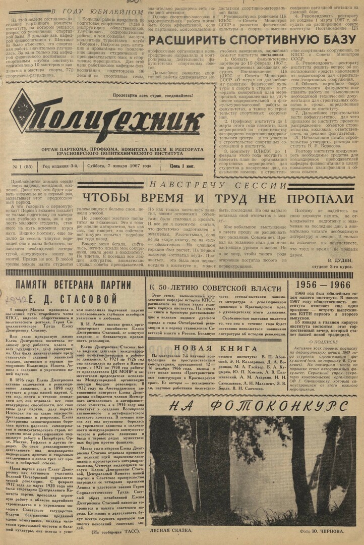 Политехник : газета. 1967 г. № 1 (85) (7 января)