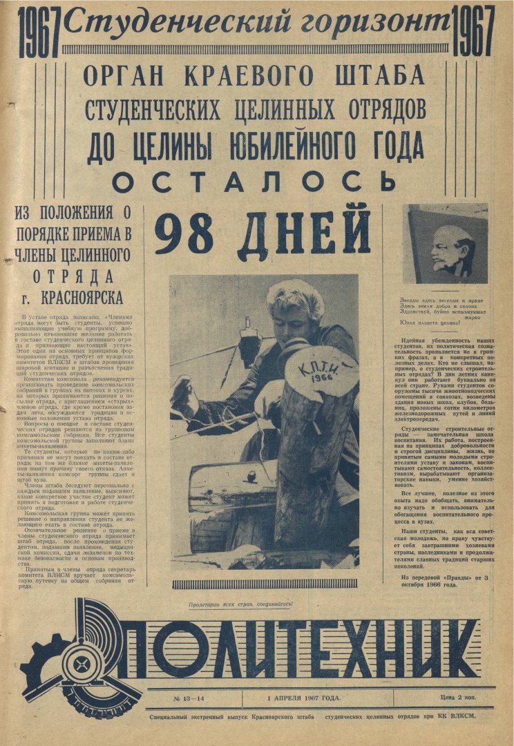 Политехник : газета. 1967 г. № 13/14 (1 апреля)