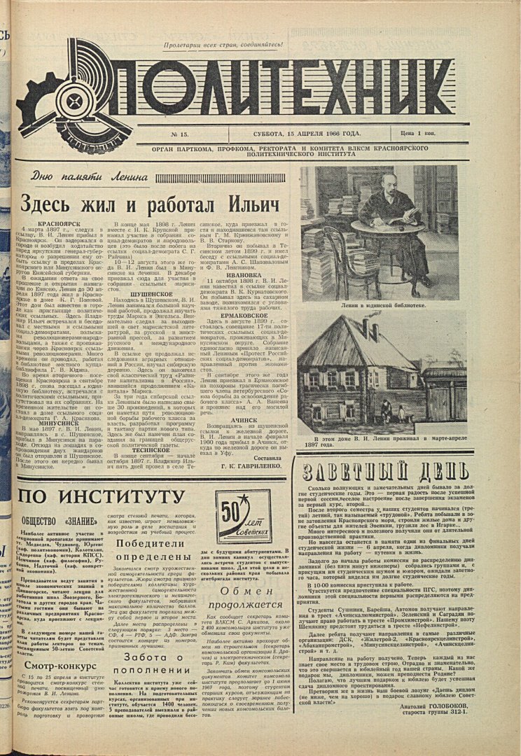 Политехник : газета. 1967 г. № 15 (15 апреля)