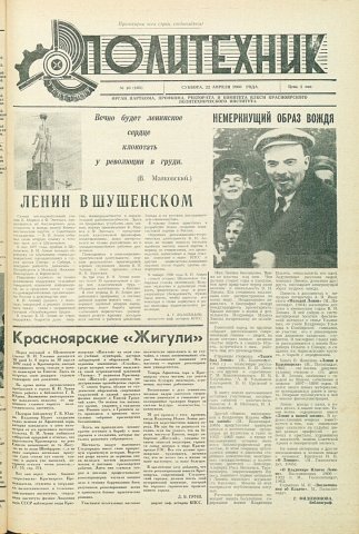 Политехник : газета/ Краснояр. политех. ин-т. - Красноярск : КГТУ, 1964 - - 2006 1967г. N 16 (105) (22 апреля) . - На 1-й странице допущена опечатка - ошибочно указан 1966 год.http://lib3.sfu-kras.ru/ft/LIB2/ELIB_DC/SFUPRSV/sfupol/1967/1967_04_22_0105.pdf Держатели документа: Российская государственная библиотека