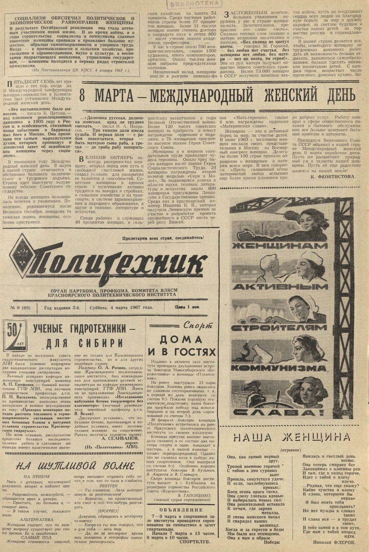 Политехник : газета. 1967 г. № 9 (93) (4 марта)