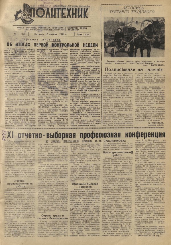 Политехник : газета. 1968 г. № 1 (126) (5 января)