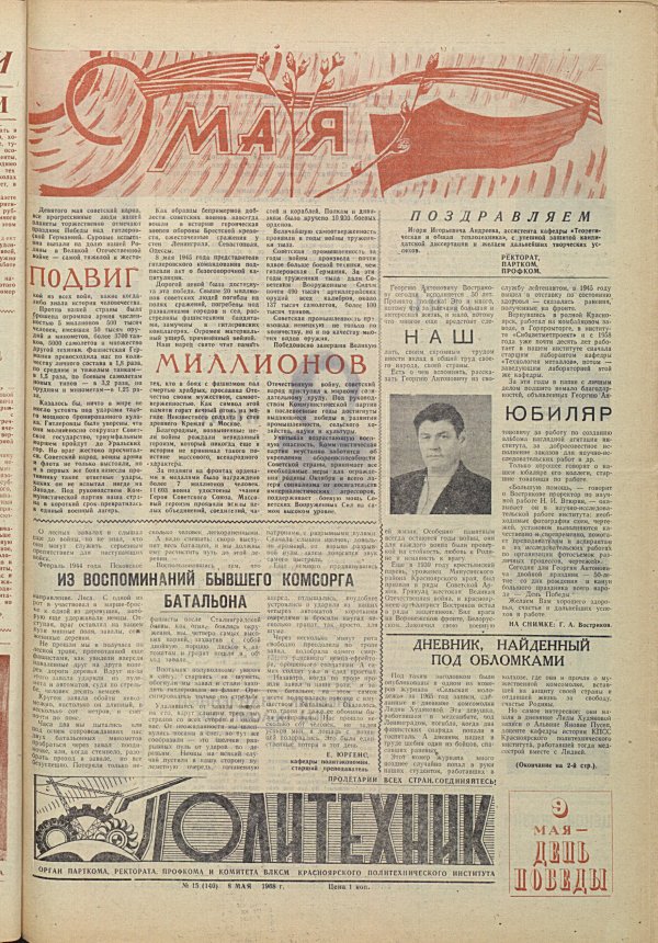 Политехник : газета. 1968 г. № 15 (140) (8 мая)