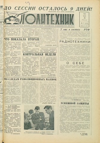 Политехник : газета. 1968 г. № 17 (142) (24 мая)