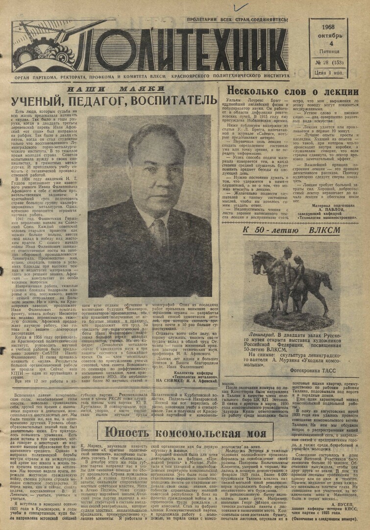 Политехник : газета. 1968 г. № 28 (153) (4 октября)