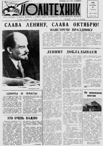 Политехник : газета/ Краснояр. политех. ин-т. - Красноярск : КГТУ, 1964 - - 2006 1969г. N 18 (183) (31 октября) http://lib3.sfu-kras.ru/ft/LIB2/ELIB_DC/SFUPRSV/sfupol/1969/1969_10_31_0183.pdf