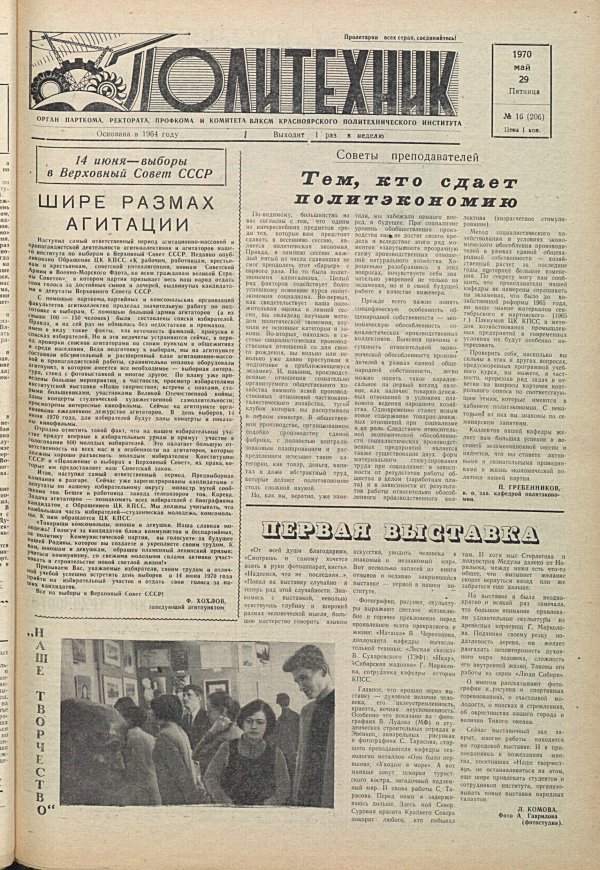 Политехник : газета. 1970 г. № 16 (206) (29 мая)