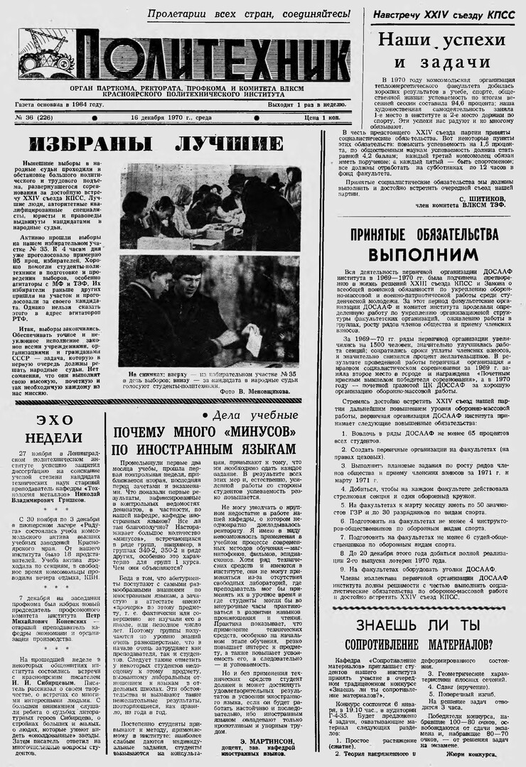 Политехник : газета. 1970 г. № 36 (226) (16 декабря)