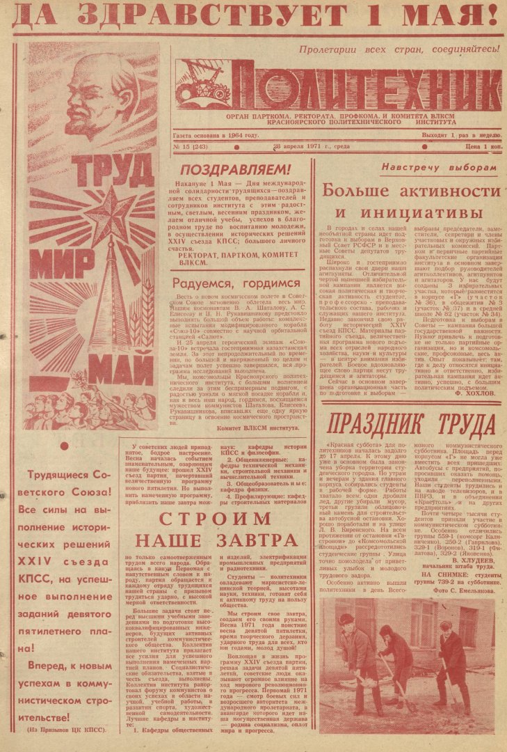 Политехник : газета. 1971 г. № 15 (243) (28 апреля)