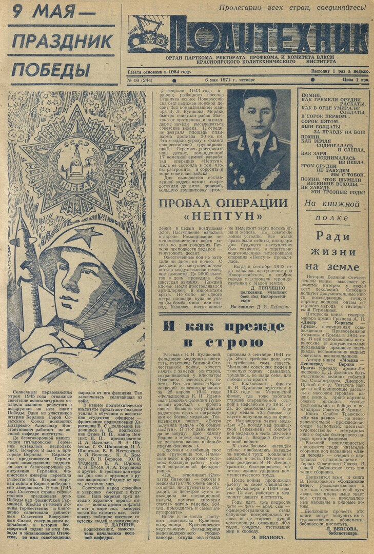 Политехник : газета. 1971 г. № 16 (244) (6 мая)