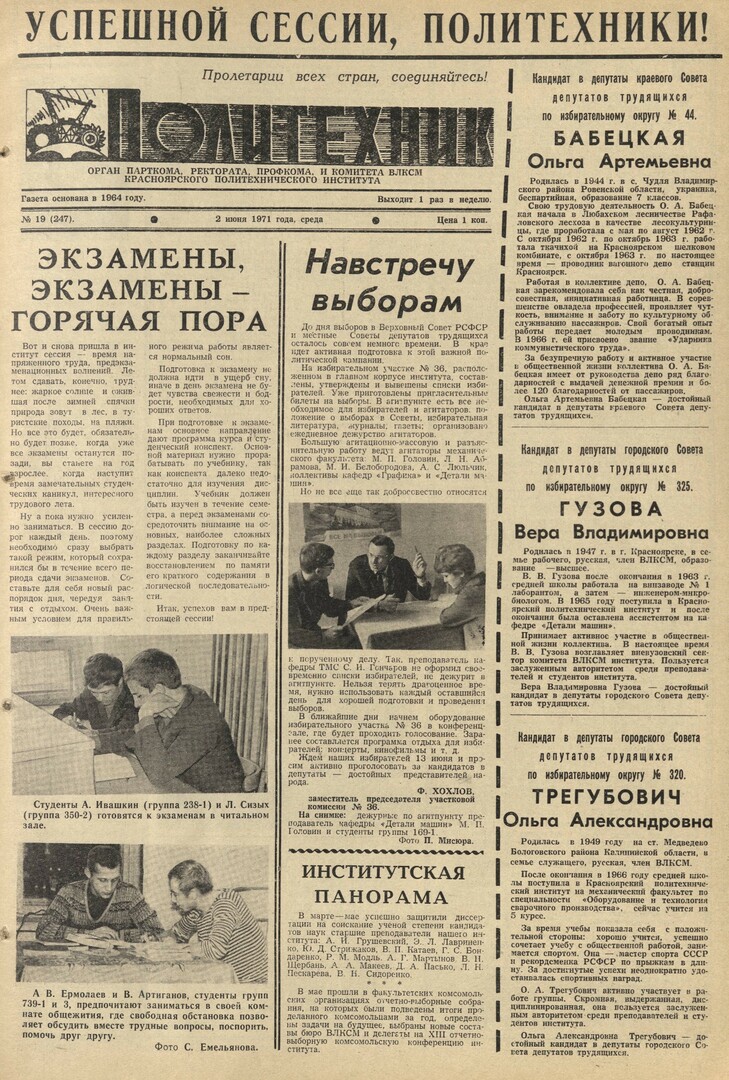 Политехник : газета. 1971 г. № 19 (247) (2 июня)