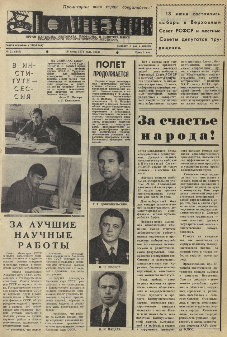 Политехник : газета. 1971 г. № 21 (249) (16 июня)