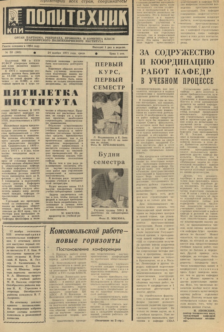 Политехник : газета. 1971 г. № 35 (263) (24 ноября)