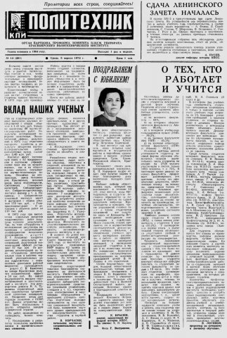 Политехник : газета. 1972 г. № 14 (281) (5 апреля)
