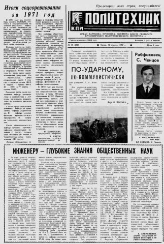 Политехник : газета. 1972 г. № 15 (282) (12 апреля)