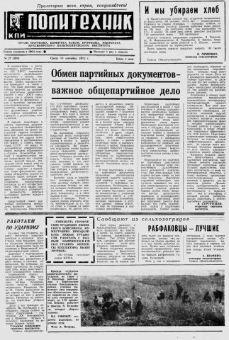Политехник : газета. 1972 г. № 27 (294) (13 сентября)