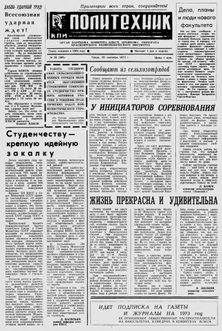 Политехник : газета. 1972 г. № 28 (295) (20 сентября)