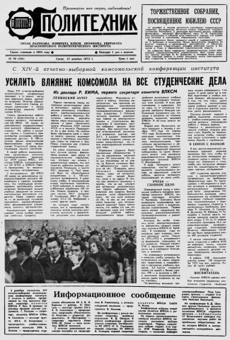 Политехник : газета. 1972 г. № 39 (306) (13 декабря)
