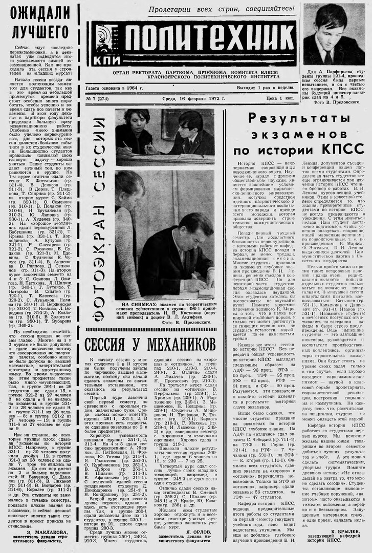 Политехник : газета/ Краснояр. политех. ин-т. - Красноярск : КГТУ, 1964 - - 2006 1972г. N 7 (274) (16 февраля) http://lib3.sfu-kras.ru/ft/LIB2/ELIB_DC/SFUPRSV/sfupol/1972/1972_02_16_0274.pdf