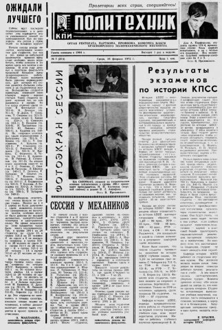 Политехник : газета. 1972 г. № 7 (274) (16 февраля)