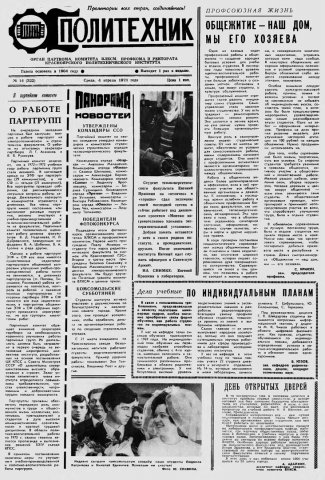Политехник : газета. 1973 г. № 14 (322) (4 апреля)